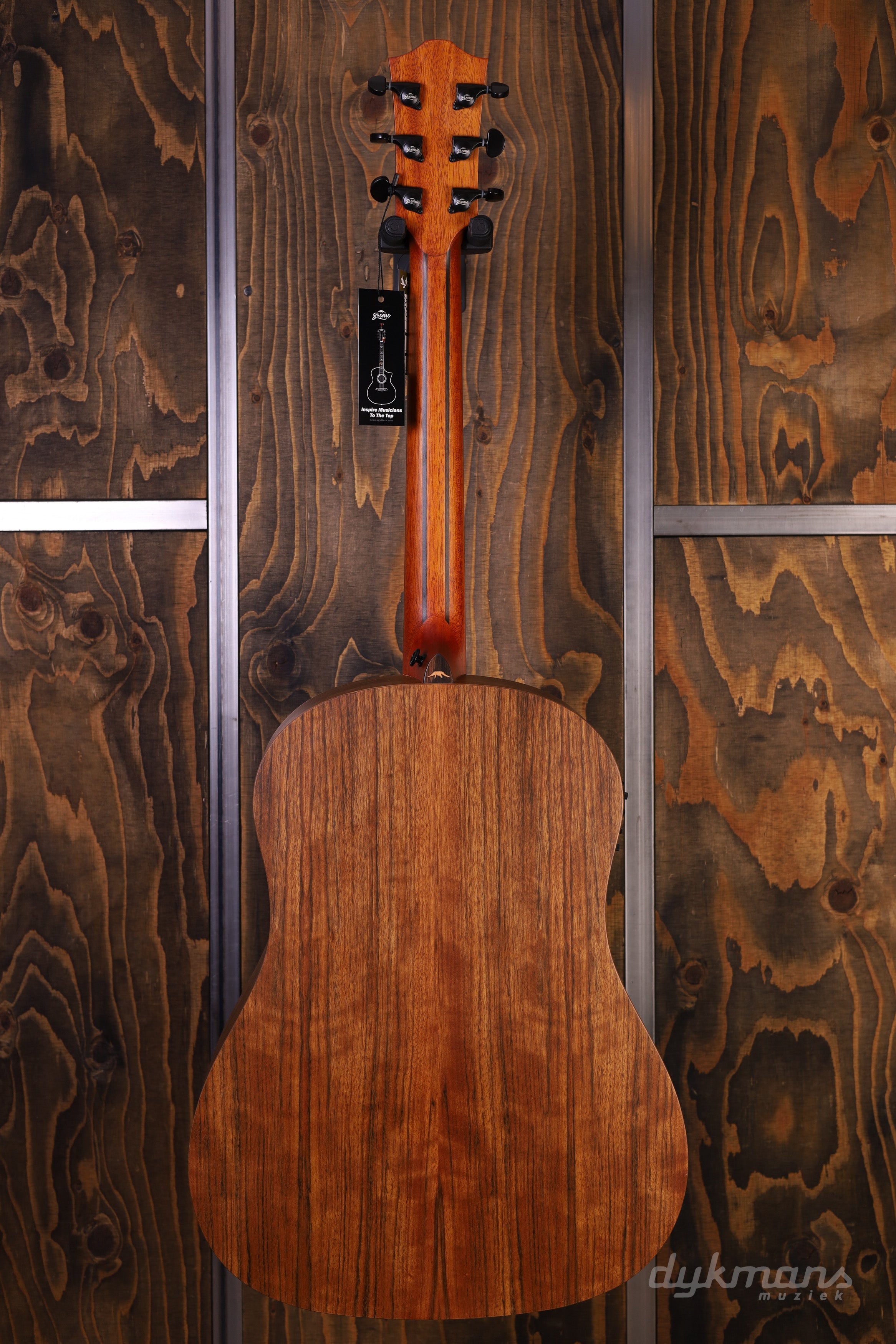 Houtsoorten voor een Unieke Klank Het bovenblad is gemaakt van massief mahonie, terwijl de zij- en achterkant uit walnoot bestaan. Deze combinatie zorgt niet alleen voor een stijlvolle uitstraling, maar ook voor een volle, warme klank die met de jaren alleen maar rijker wordt. Het fretboard is vervaardigd uit super slijtvast amara ebbenhout en voorzien van silver/nickel jumbo frets, wat zorgt voor een soepel speelgevoel.