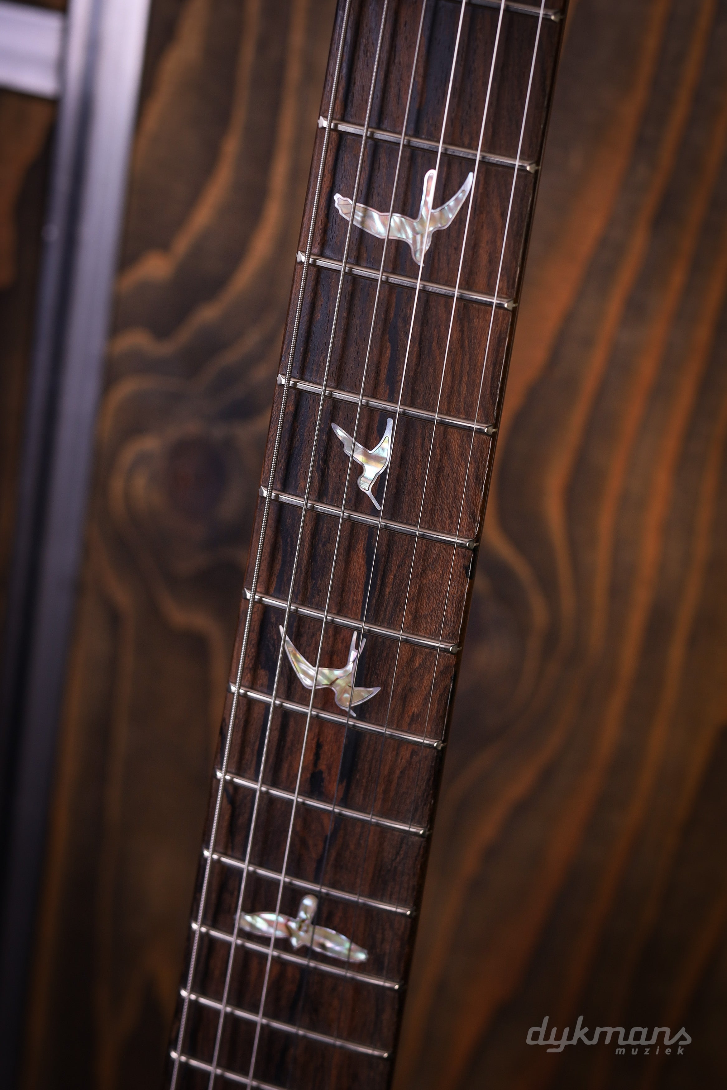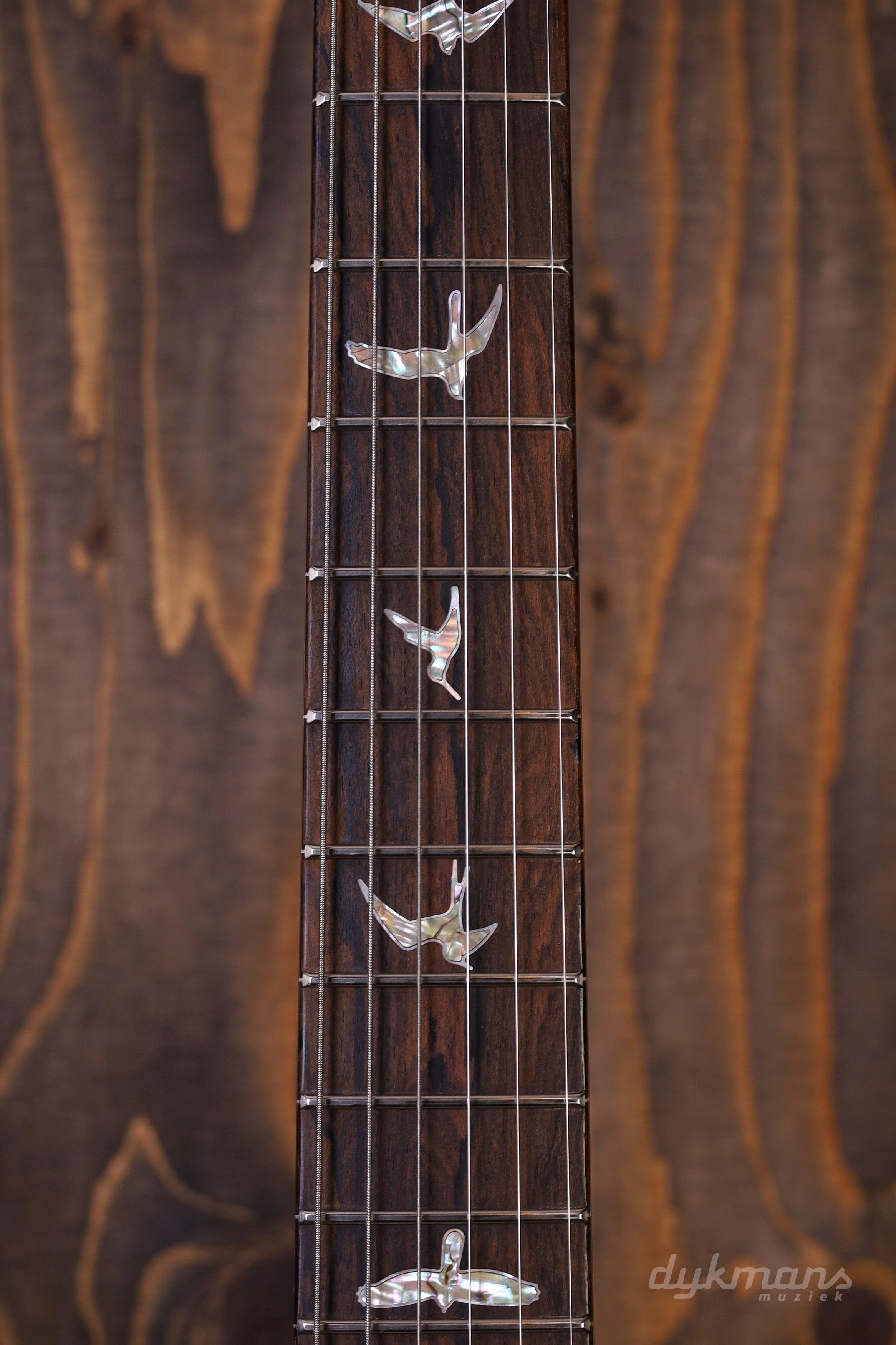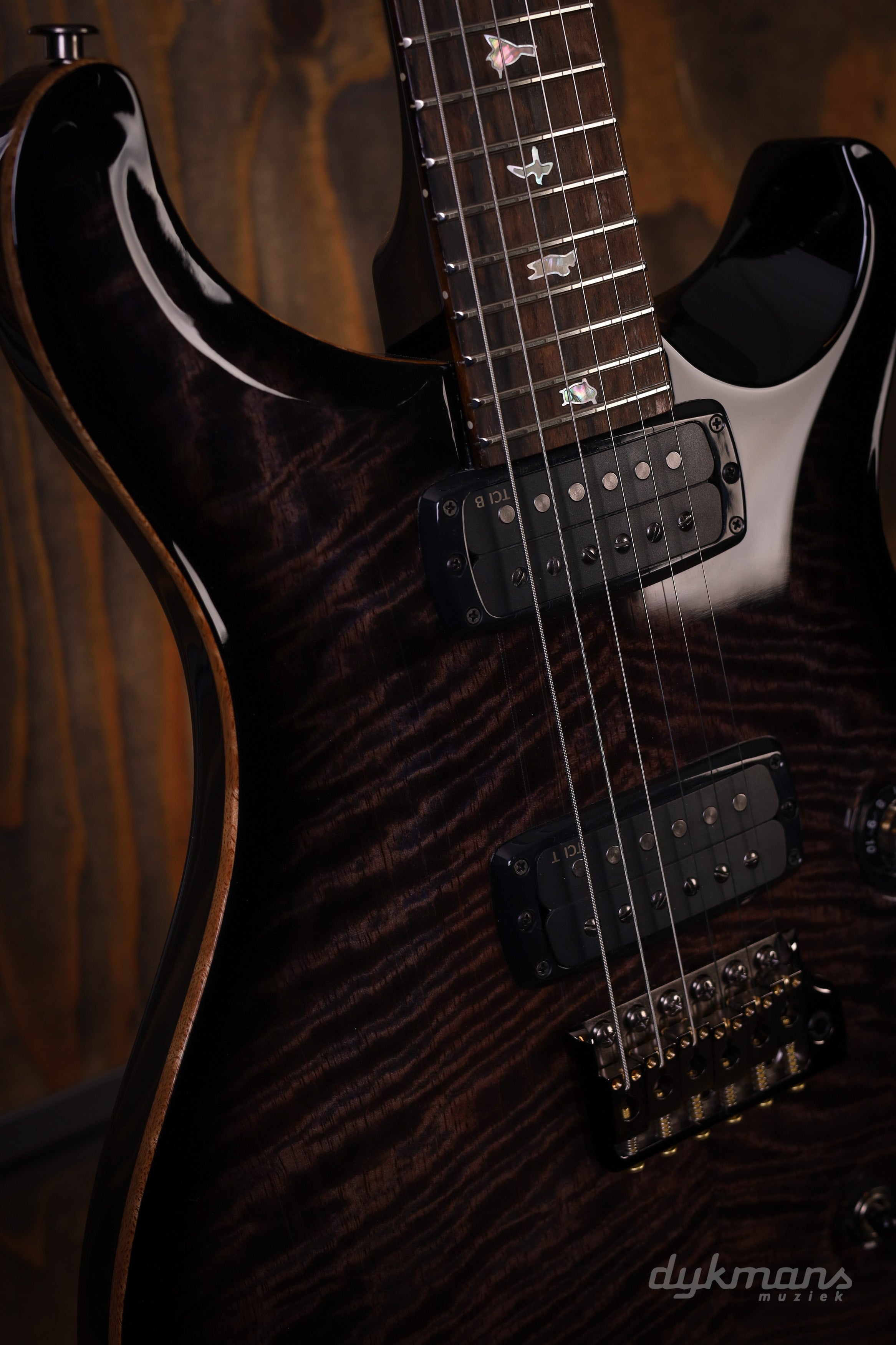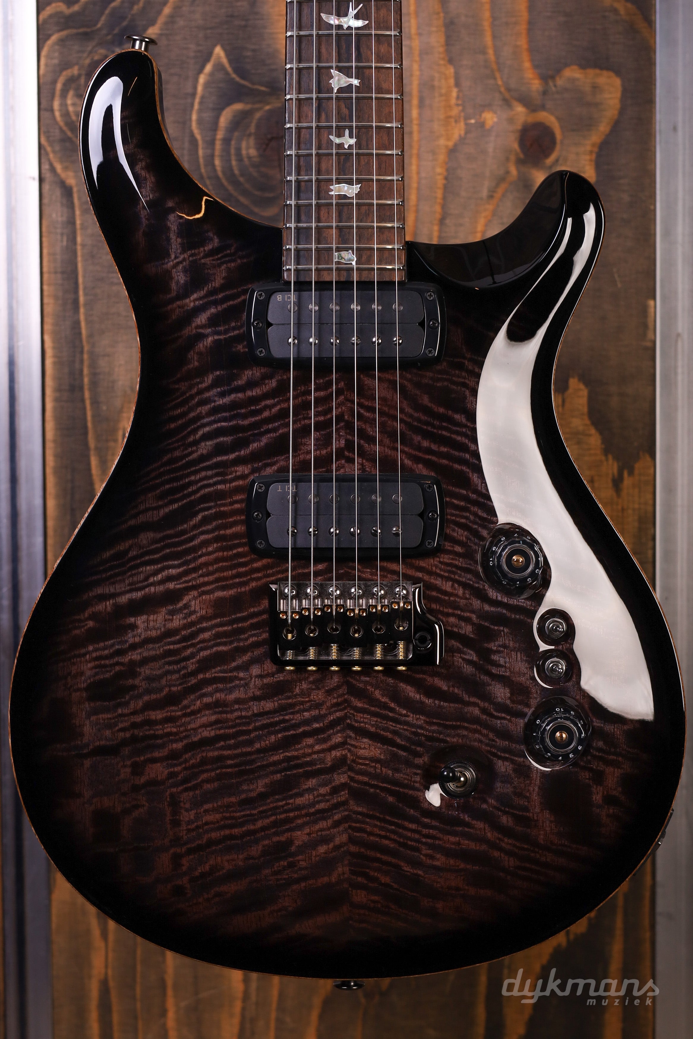 De basis is zoals je ’m kent: mahonie body en hals, 24 frets en een 25” mensuur. Speelt soepel, ligt lekker in de hand en voelt direct vertrouwd. De PRS Gen III tremolo en Phase III tuners met wing buttons zorgen ervoor dat alles stabiel blijft, ook als je de tremolo goed gebruikt.
