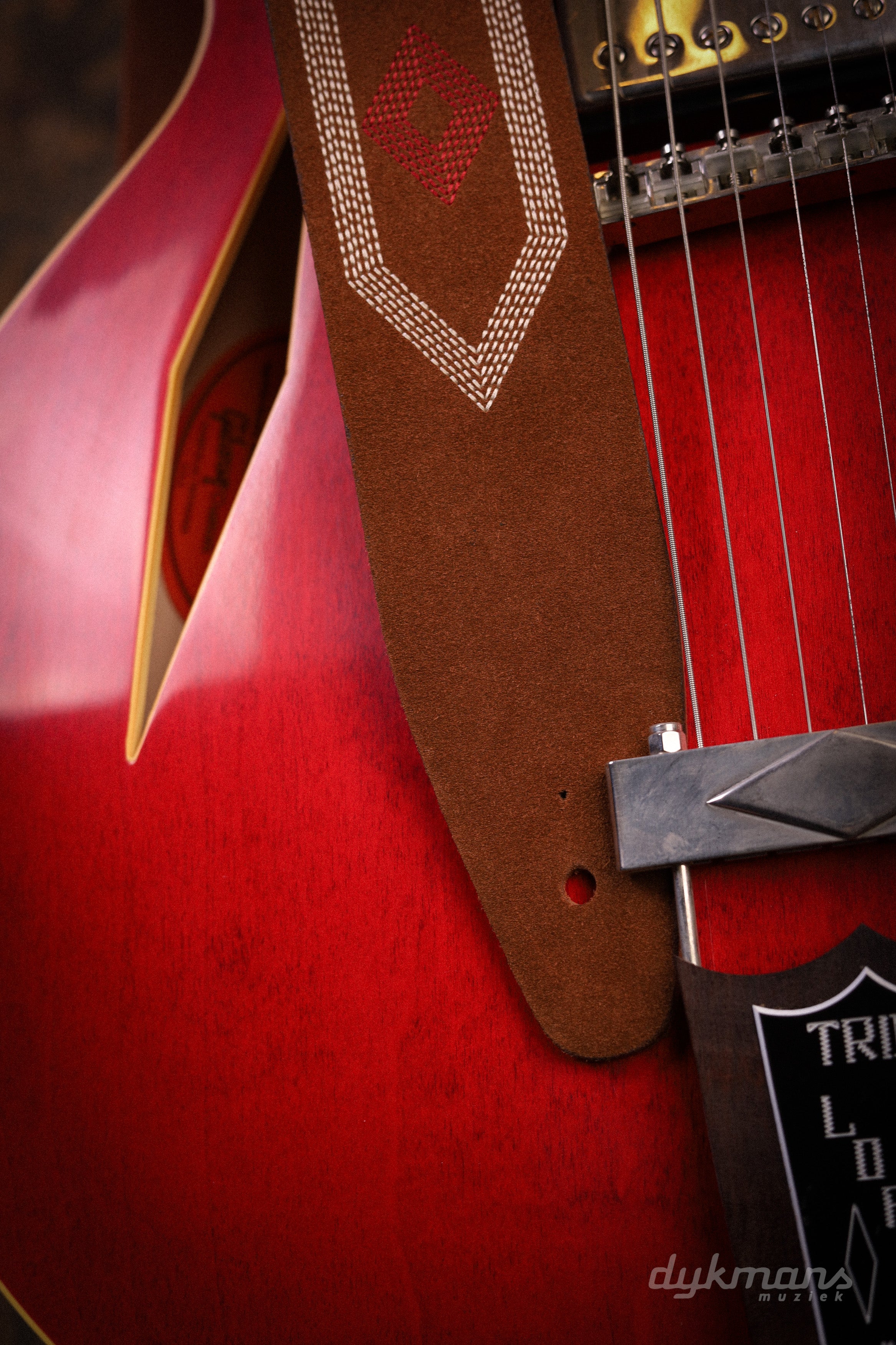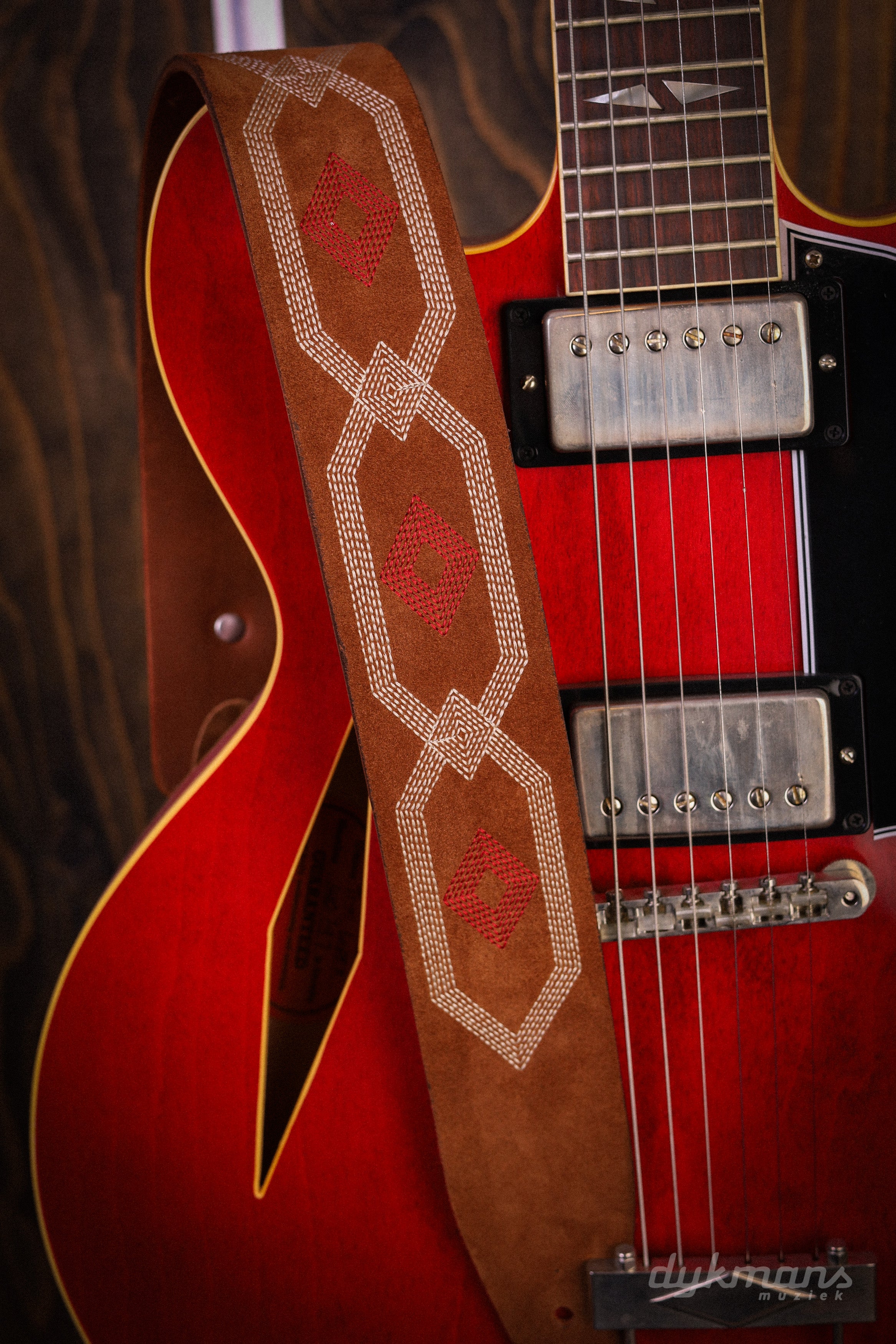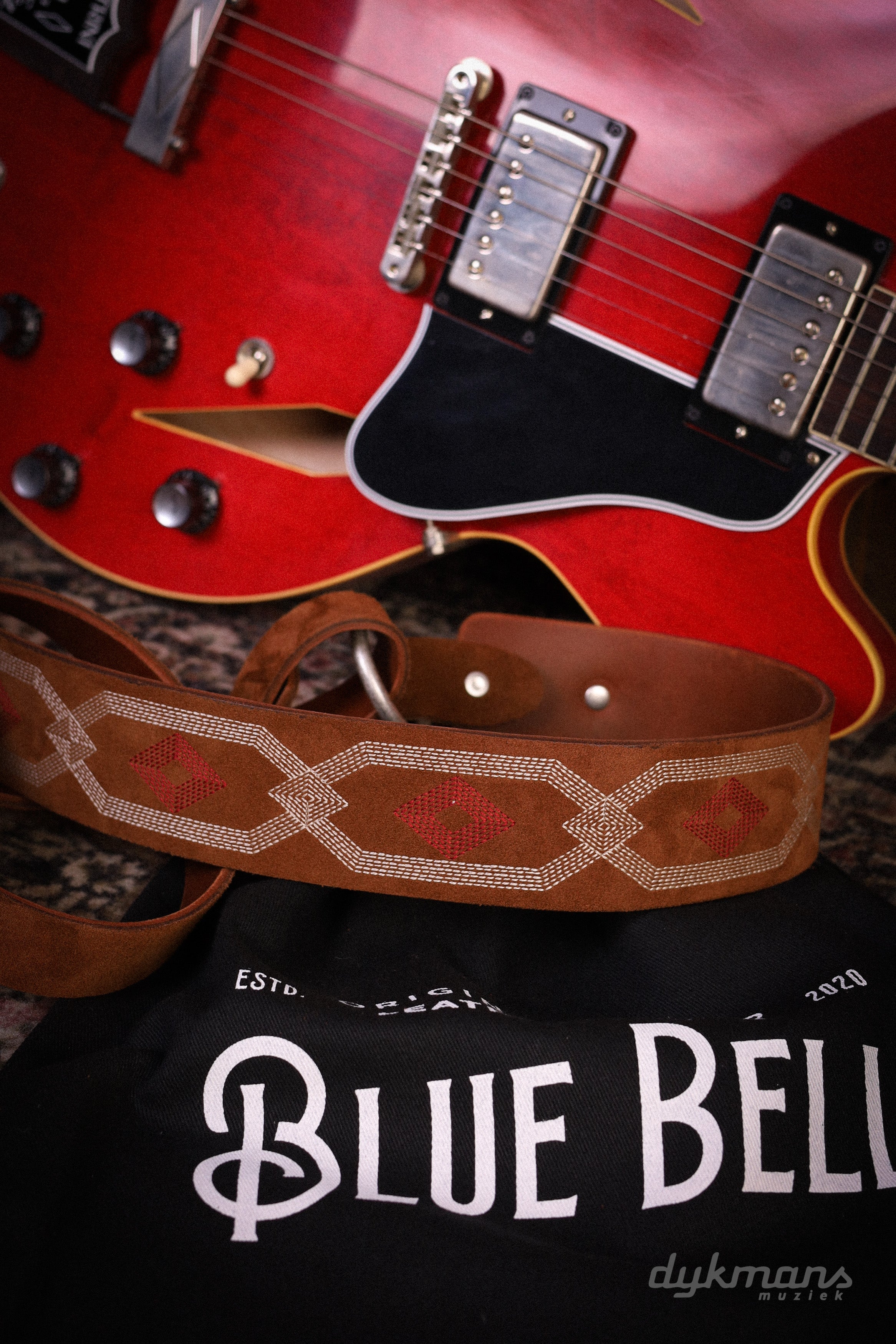 De Blue Bell Talisman Strap Amber is een karaktervolle gitaarband die vintage stijl combineert met het ambachtelijke vakmanschap waar Blue Bell om bekendstaat. Het ontwerp heeft een uitgesproken, bijna symbolisch patroon dat doet denken aan klassieke rock- en bluesstraps uit de jaren ’60 en ’70.