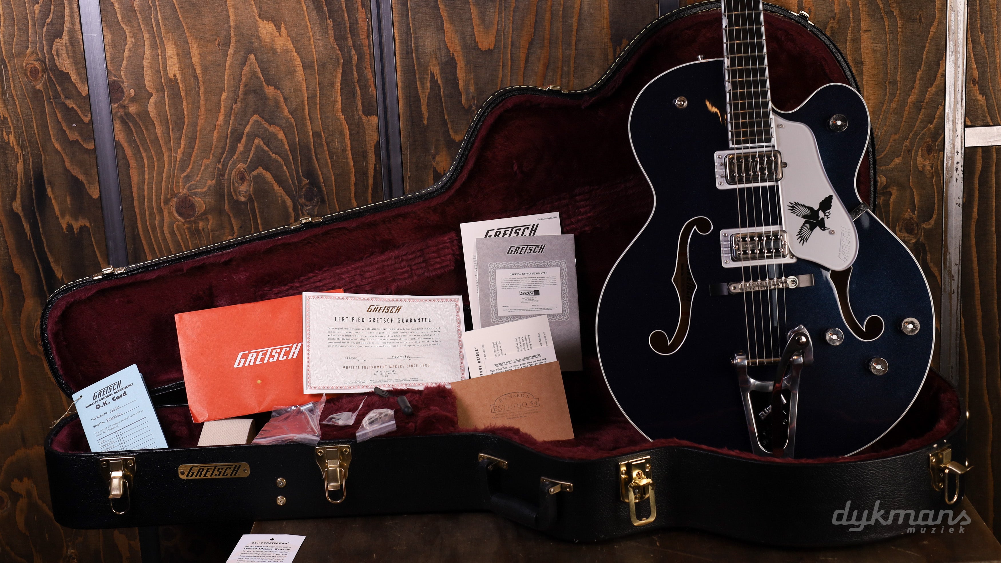 Ontwikkeld in samenwerking met Rich Robinson (bekend van The Black Crowes), combineert deze gitaar klassieke Gretsch-esthetiek met een krachtige, veelzijdige sound. De volledig holle body met gelamineerd esdoorn en een massief sparren bovenblad zorgt voor een open, resonante klank met uitstekende projectie en controle dankzij de 1959-style trestle bracing.
