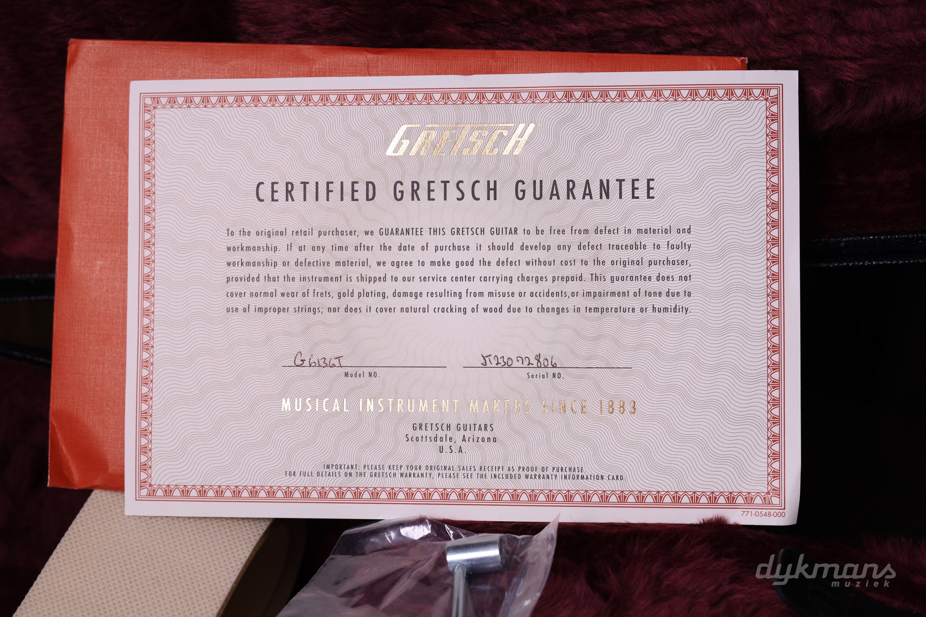 De esdoorn hals met ebbenhouten toets (12” radius) speelt snel en comfortabel, terwijl premium hardware zoals de Bigsby® B6 tremolo, Adjusto-Matic™ brug en Grover® Imperial tuners zorgen voor stabiliteit, sustain en karakter.