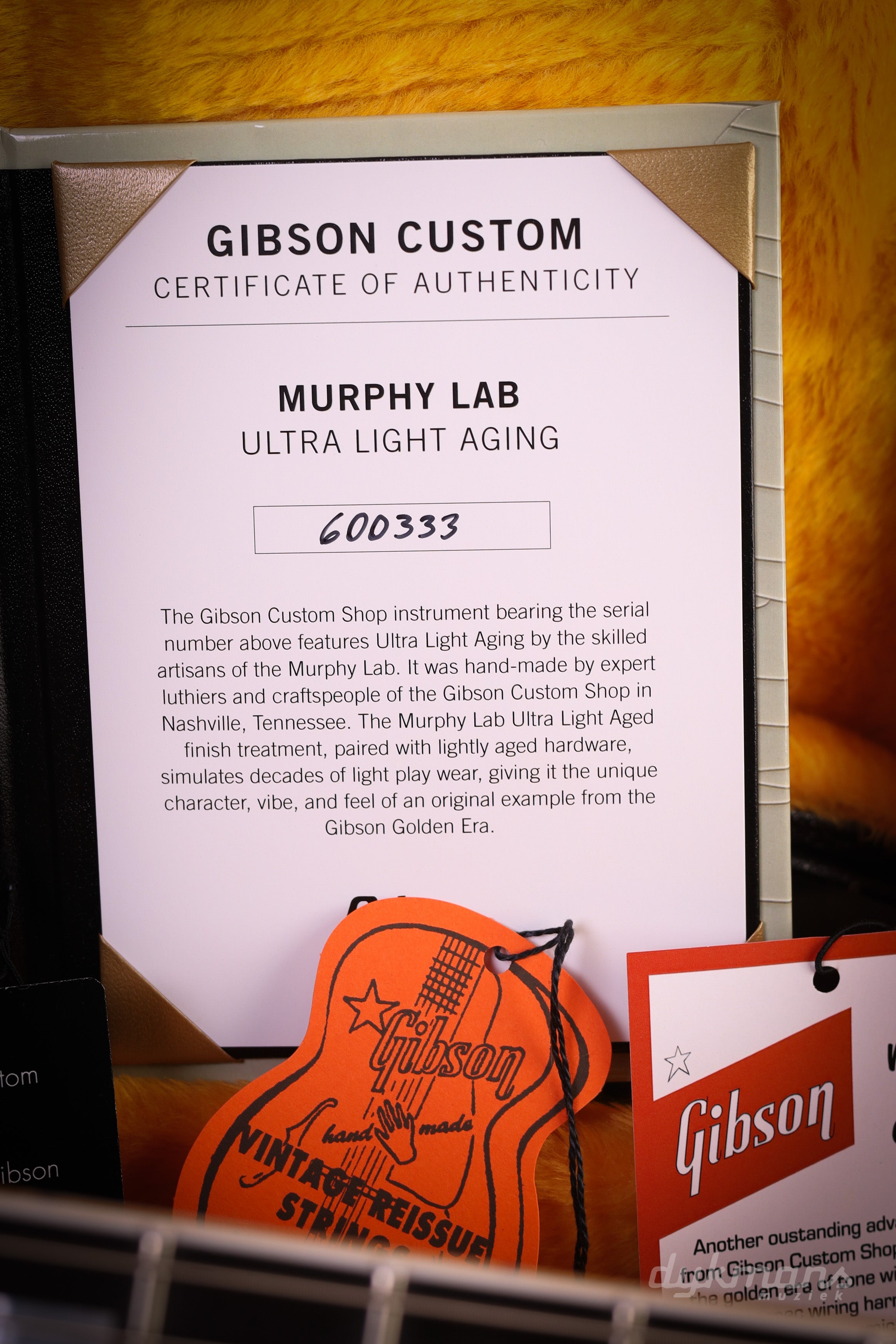 Wat deze gitaar écht bijzonder maakt, is dat het een Dijkmans Exclusive betreft: speciaal samengesteld voor de winkel in nauwe samenwerking met Tom Fowle van de Murphy Lab. Deze unieke samenwerking resulteert in een instrument dat je nergens anders tegenkomt – met een zorgvuldig gekozen specificatie en een afwerking die perfect in balans is tussen esthetiek en authenticiteit.