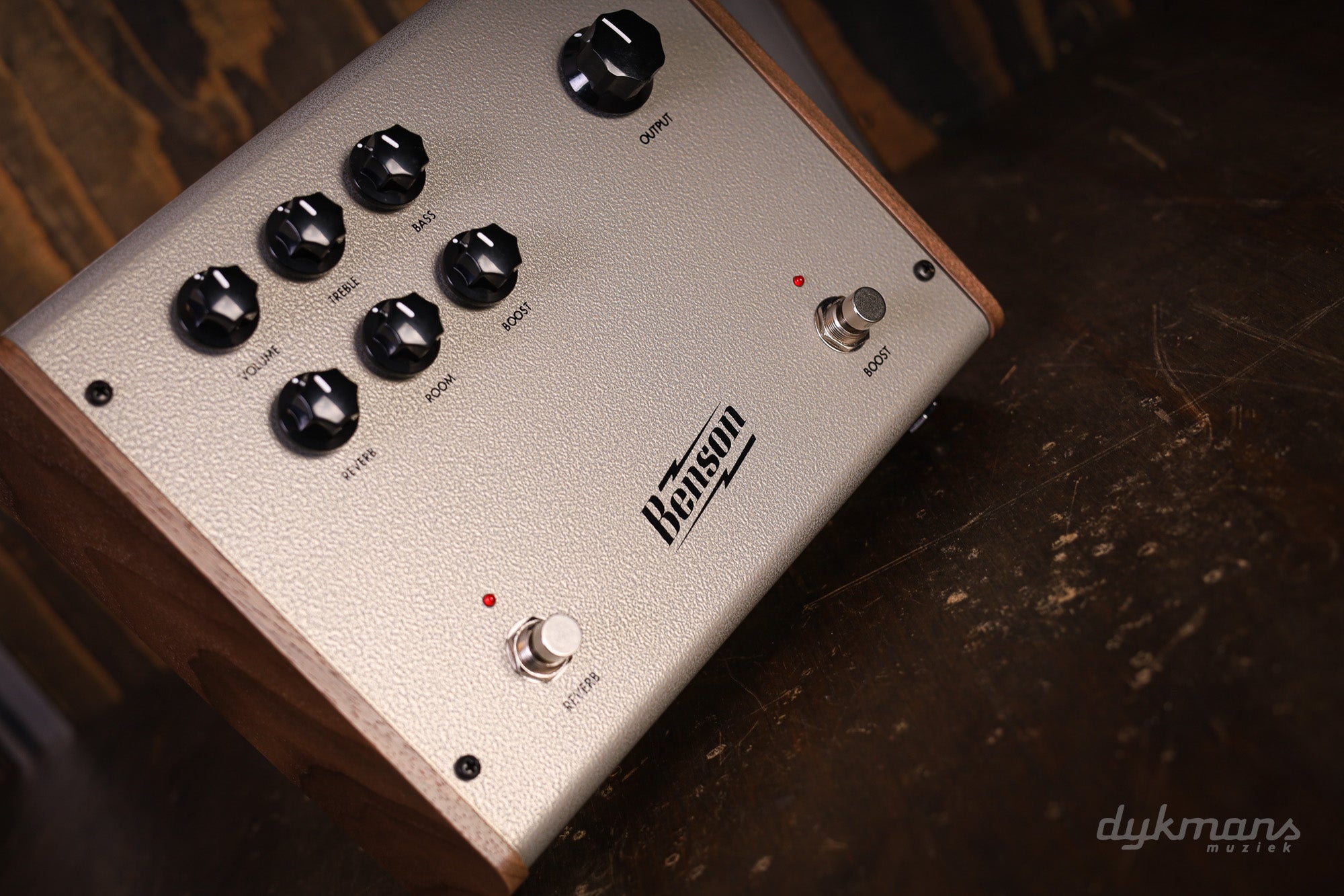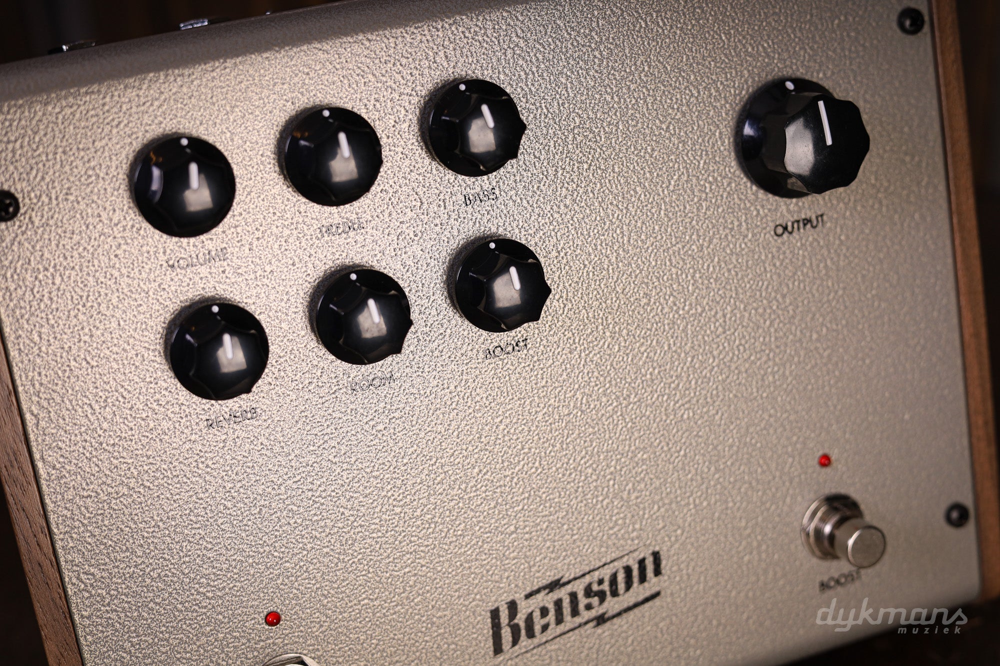 Volume, Treble, Bass, Reverb, Room, Boost, Output