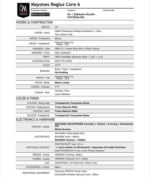 Are you interested in this Mayones? You can Pre-Order it now. The expected delivery time is the first half of 2026. Do you have any questions? Feel free to contact us via info@dijkmansmuziek.nl.