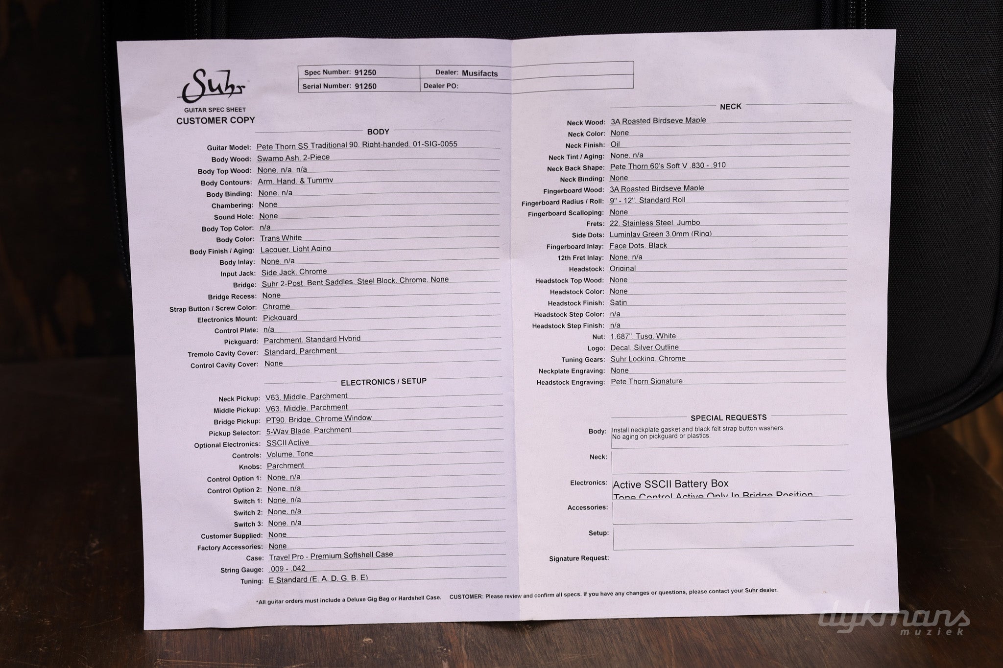 Suhr Pete Thorn Traditional 90 Trans White